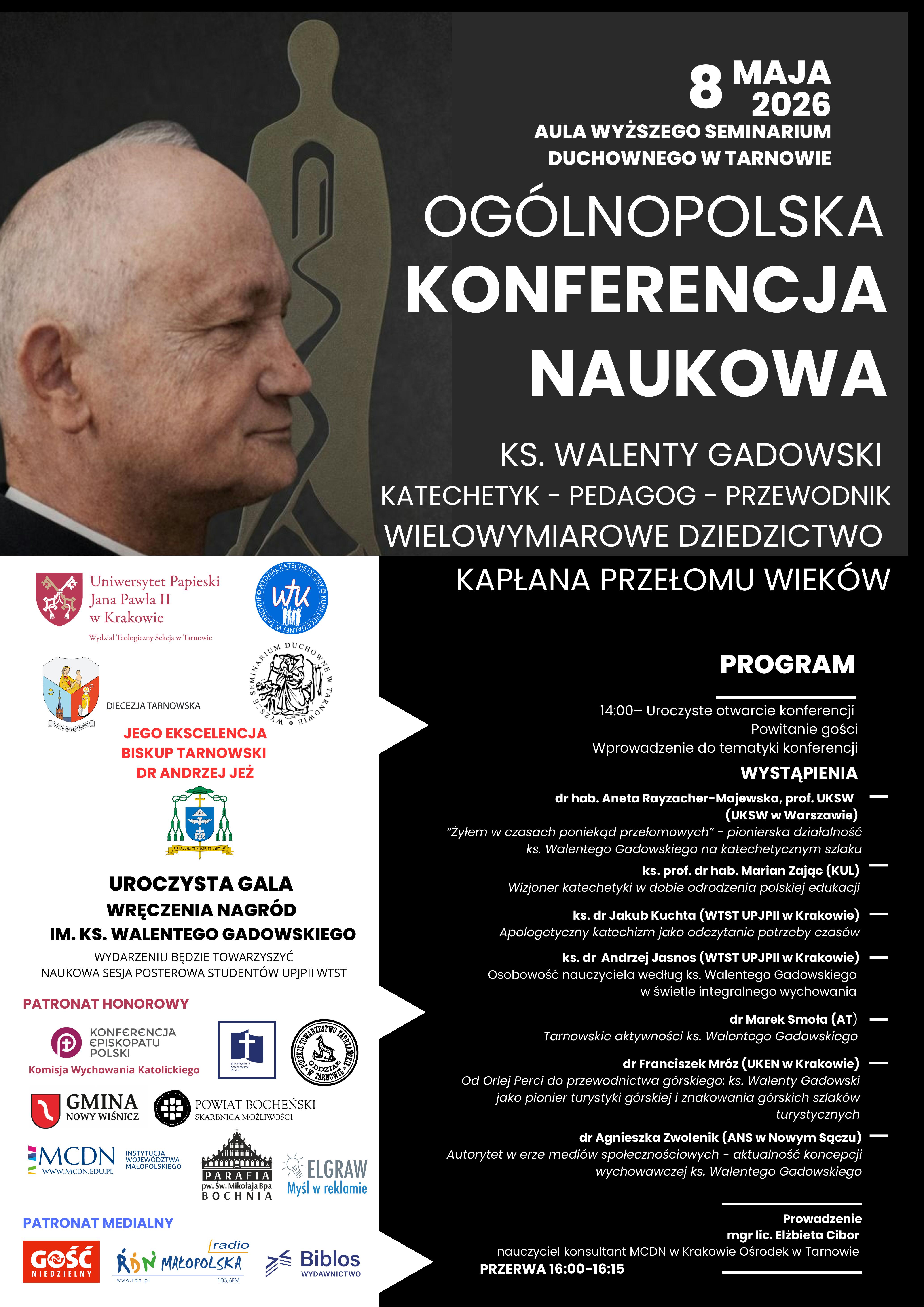Serdecznie zapraszamy do udziału w Ogólnopolskiej Konferencji Naukowej poświęconej postaci i dziedzictwu ks. Walentego Gadowskiego – wybitnego katechety, pedagoga i przewodnika duchowego przełomu XIX i XX wieku.